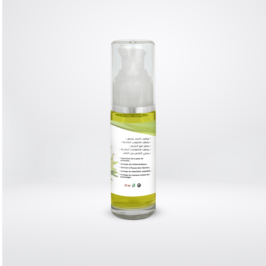 L’huile de chanvre, riche en oméga-3 et oméga-6, hydrate et apaise la peau sans effet gras tout en revitalisant les cheveux secs et abîmés. Elle est idéale pour les peaux sensibles et les soins capillaires.